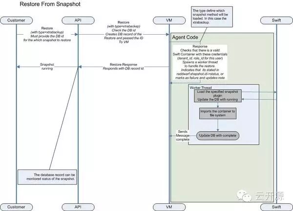 Trove 快照用于支持DbaaS 备份,复制等功能。在Trove API (guest_agent)上将支持本功能。本功能将能够支持快照,从而用来进行副本设置,主数据库克隆和备份,以及数据恢复。