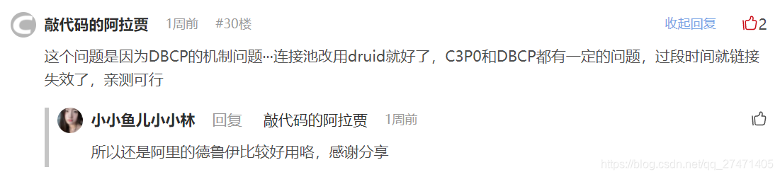 感谢这位默默分享经验的大佬,大家可以试试,将dataSource换成阿里巴巴的德鲁伊
