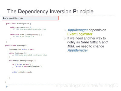 尽量不要依赖,它将由框架提供给您。这已在Spring 框架中很好地实现,此设计原理的优点在于DI 框架注入的任何类都易于使用模拟对象进行测试,并且易于维护,因为创建对象代码放在框架比放在客户端代码中要好很多。