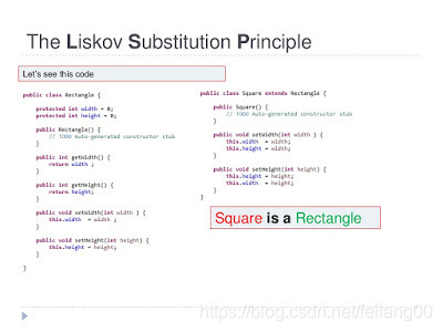 根据 Liskov 替换原则,子类型必须可以替换为父类型,即使用父类类型的方法或函数必须能够与子类的对象一起工作而没有任何问题。”