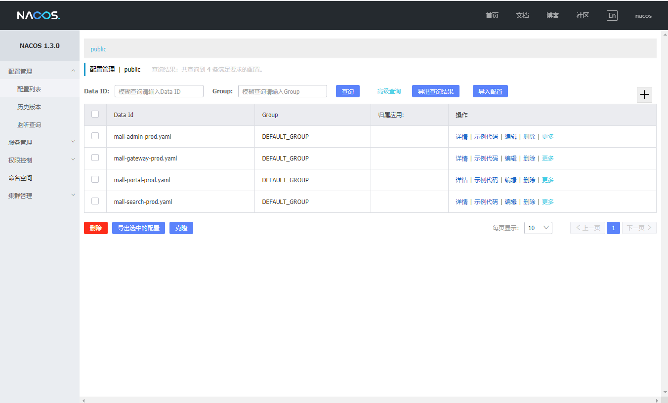 - 将应用所有配置添加到Nacos注册中心中去,具体配置文件如下。