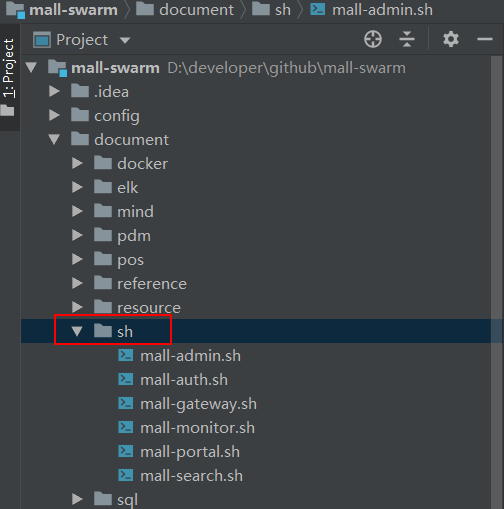 sh脚本,这里执行的是mall-admin的运行脚本: