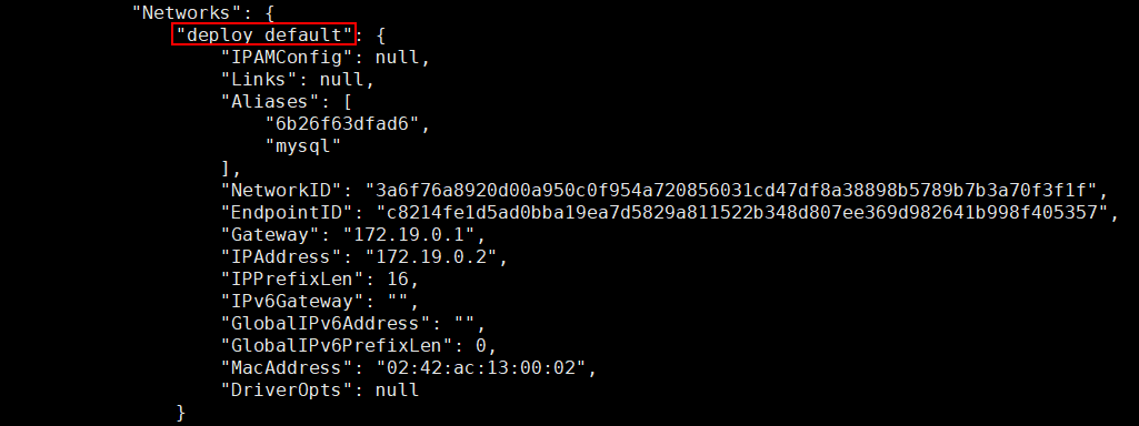 docker inspect mysql命令来查看mysql服务所在的网络;