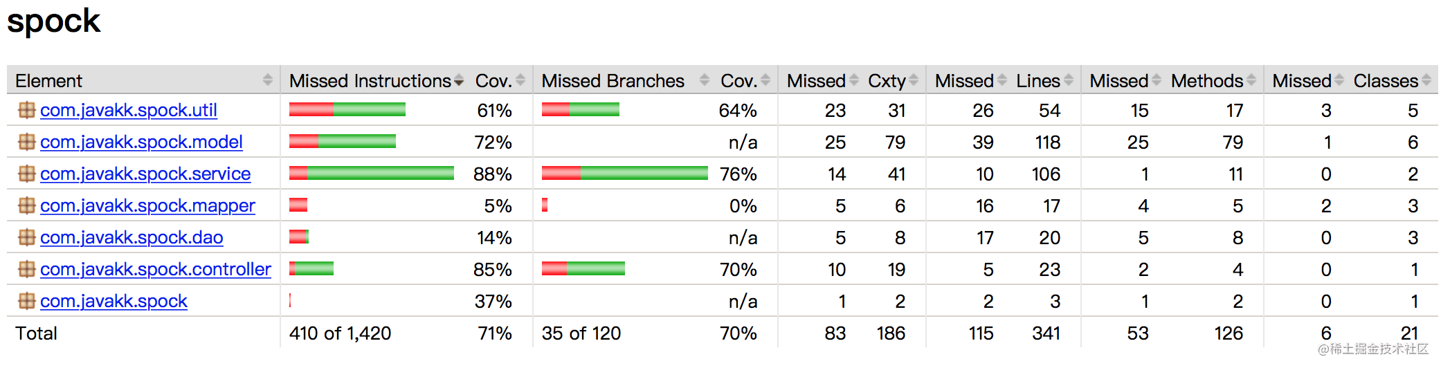 当然你也可以使用Spock自带的单测覆盖率工具,在后面的文章里会介绍具体如何配置,本篇主要说下如何通过Jacoco确认分支是否完全覆盖到