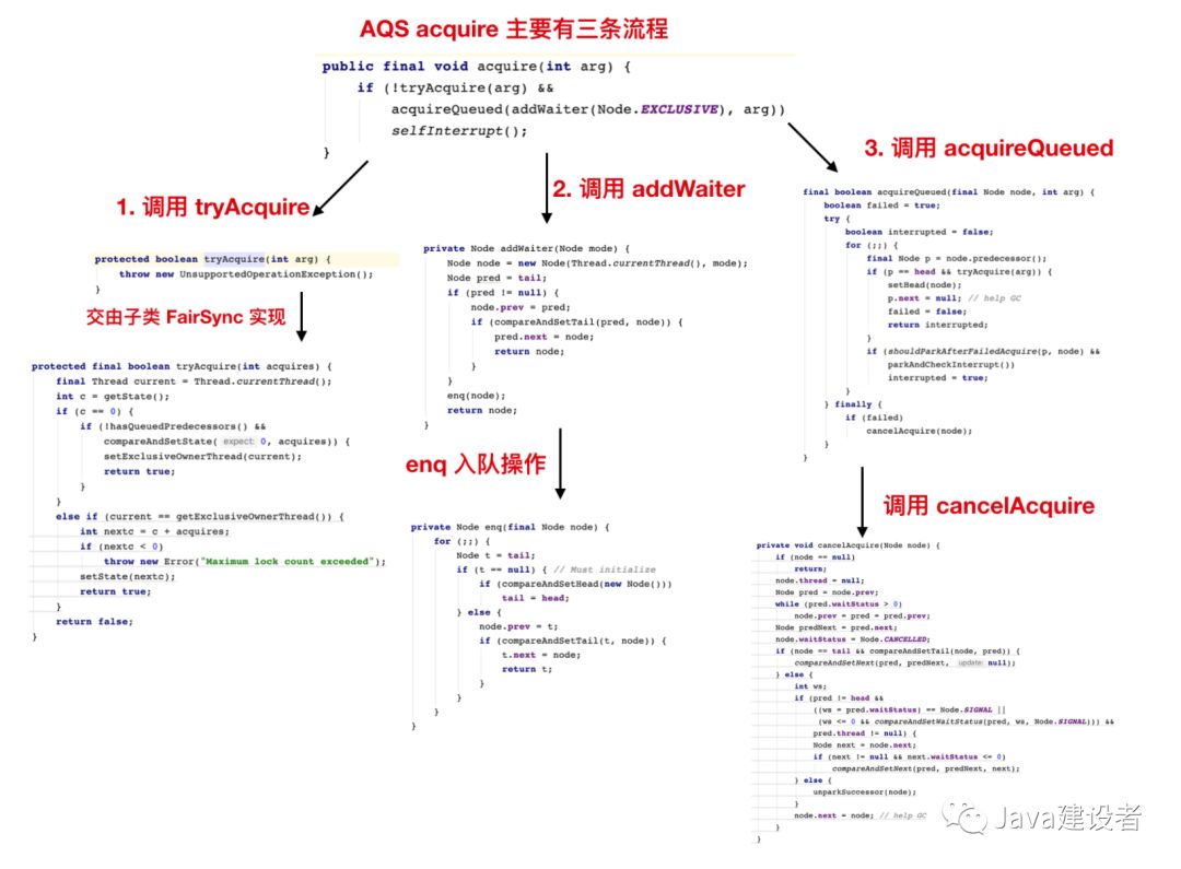 下面先看一张流程图,这张图是 acquire 方法的三条主要流程
