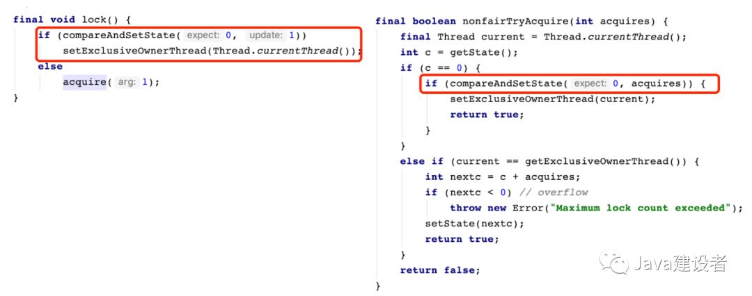 如果锁数量为0,再基于 CAS 尝试将 state(锁数量)从0设置为1一次,如果设置成功,设置当前线程为独占锁的线程;