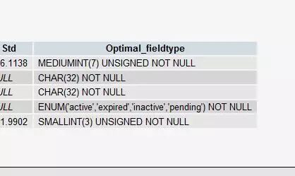 例如,如果你创建了一个INT类型的主键,但没有太多行,MySQL则可能建议您改用MEDIUMINT。或者如果你使用VARCHAR字段,如果表里只有很少的取值,你可能会得到一个建议是将其转换为ENUM。