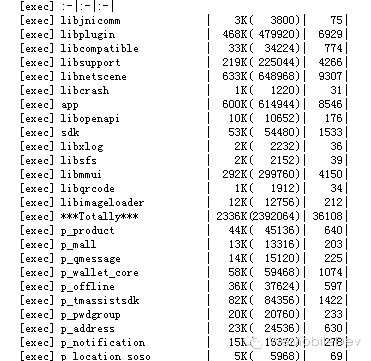 微信使用多library结构,每次编译后监控每个模块的线性内存、方法数、资源大小。