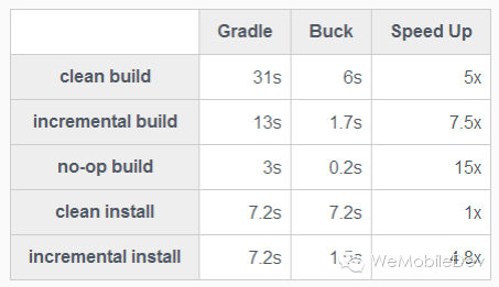 但是对于多library的结构下,ant与gradle的并行度并不足够。当前微信已经切换到Facebook的开源编译工具buck(相关介绍http://facebook.github.io/buck/),编译速度得到了大大提升。
