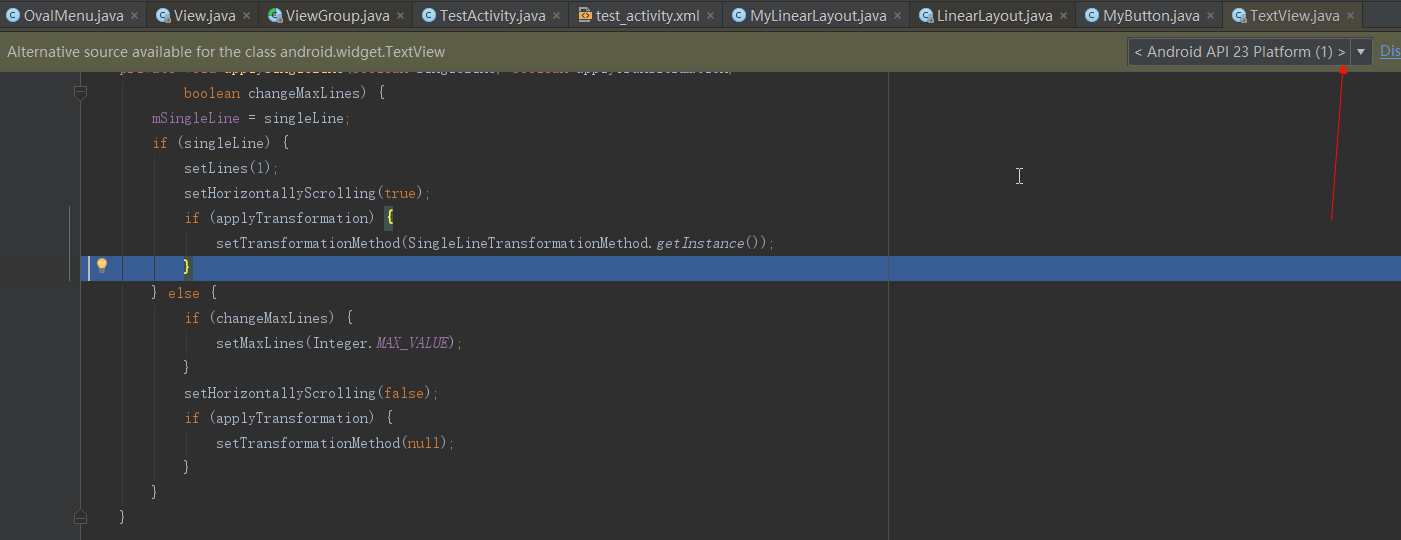 - 选择对应的的版本后,进入到TextView(Button继承自TextView)的onTouchEvent()方法,