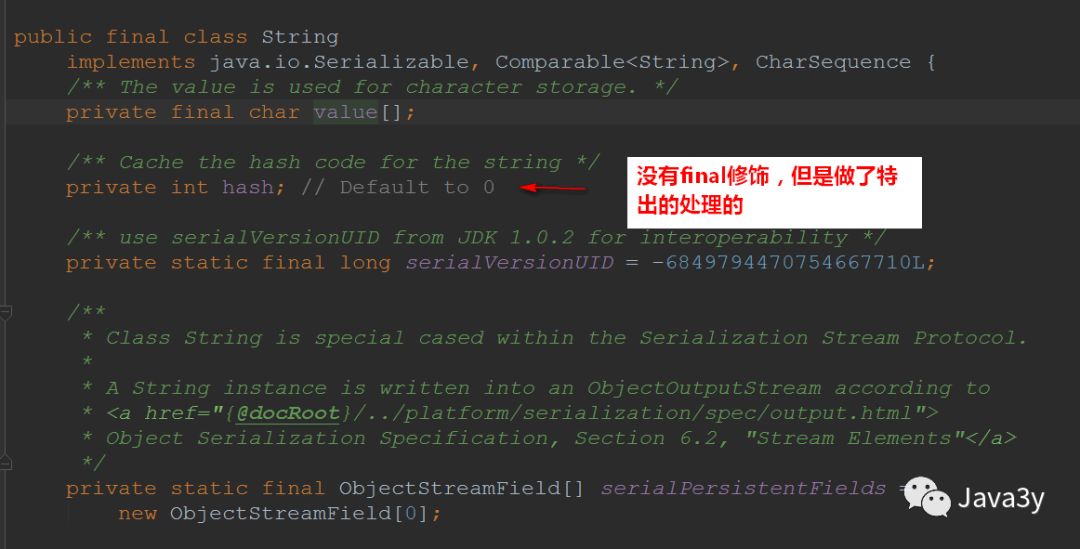String在我们学习的过程中我们就知道它是一个不可变对象,但是它没有遵循第二点(对象所有的域都是final修饰的),因为JVM在内部做了优化的。但是我们如果是要自己设计不可变对象,是需要满足三个条件的。