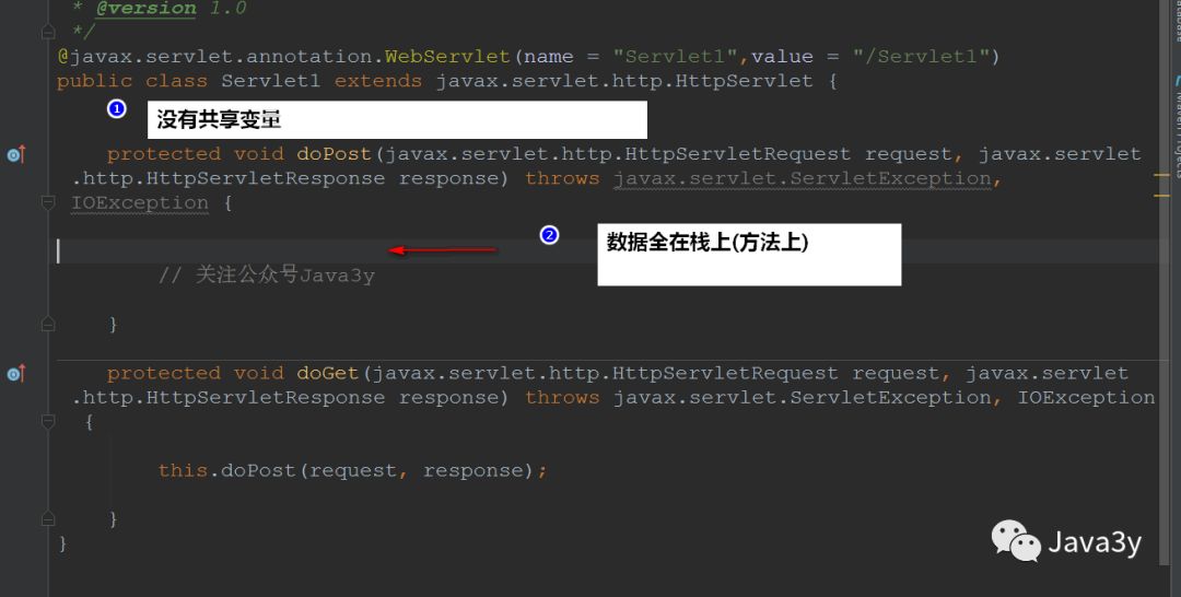 就用我们熟悉的Servlet来举例子,写了那么多的Servlet,你见过我们说要加锁吗??我们所有的数据都是在方法(栈封闭)上操作的,每个线程都拥有自己的变量,互不干扰!