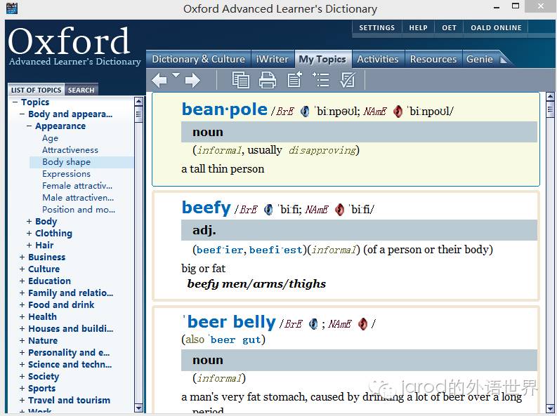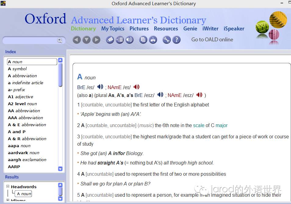 朗文告一段落,我们说说神器2,OALD8的pc版,是除了朗文当代之外,另一个杰出的字典。
