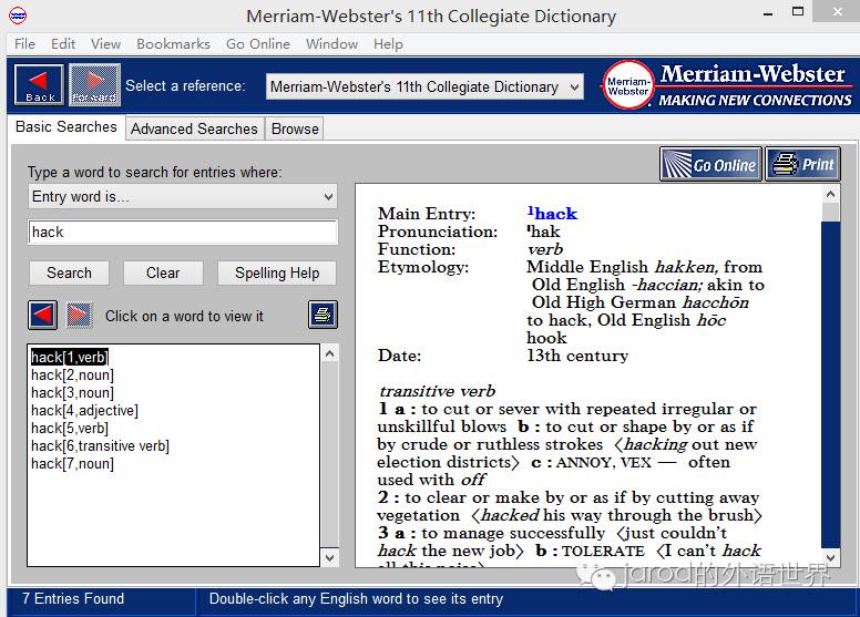 下面说一说韦氏字典的pc版,我使用的是第11th版