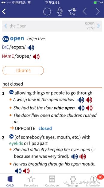 对open的查询这个孔雀兰的是OALD8 ,下面这个紫蓝的是OALD9的解释