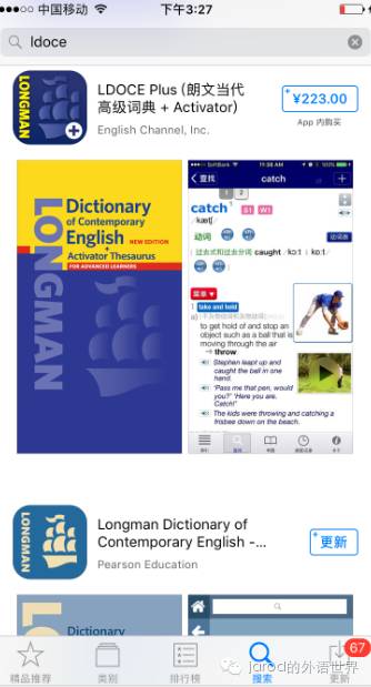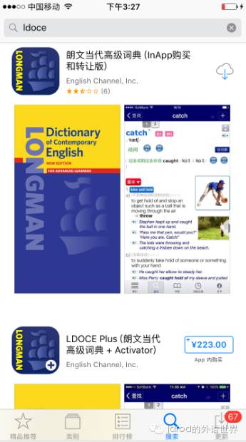 那就先看看朗文好了,好的留在后面介绍,朗文当代我购买的时候还是LDOCE5 ,不过我介绍的几个app都是英英的,后面会介绍一个英汉的,别急。在ios app store里面输入 Ldoce 是朗文当代的简称结果如下: