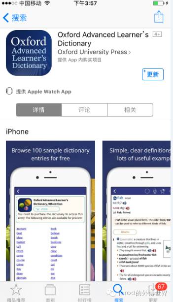 我们对朗文的app就不展开讲了,现在把压轴的放出来,OALD手机版,我最喜欢用的就是这个了,我买的时候是OALD8,现在升级到9了,也忘记花了多少钱。反正升级还得花钱。