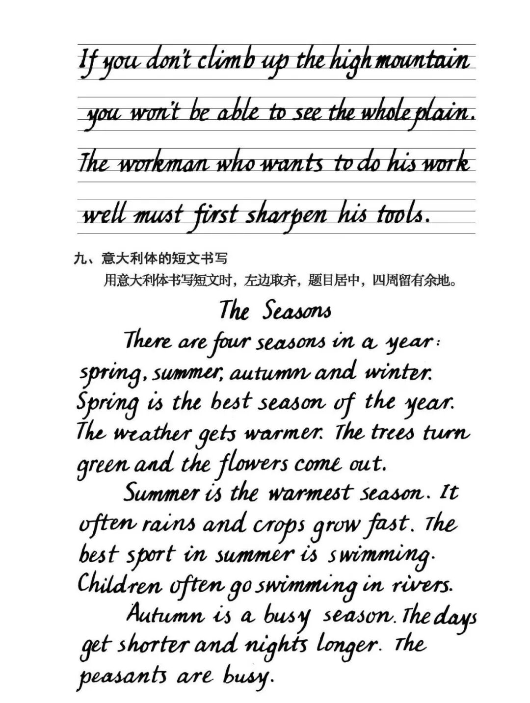 小写字母a,c,e,m,n,o,r,s,u,v,w,x,z要写在中间的一格里,上下抵线,但不要出格。
