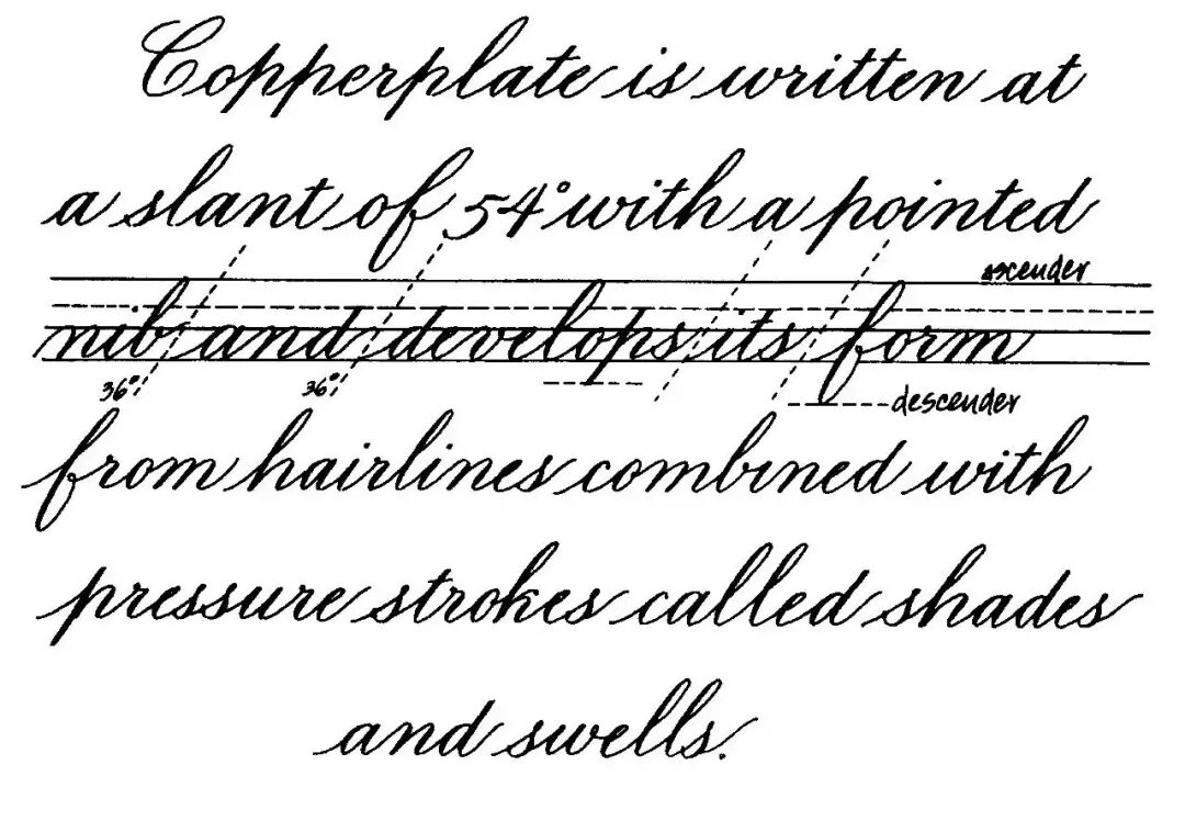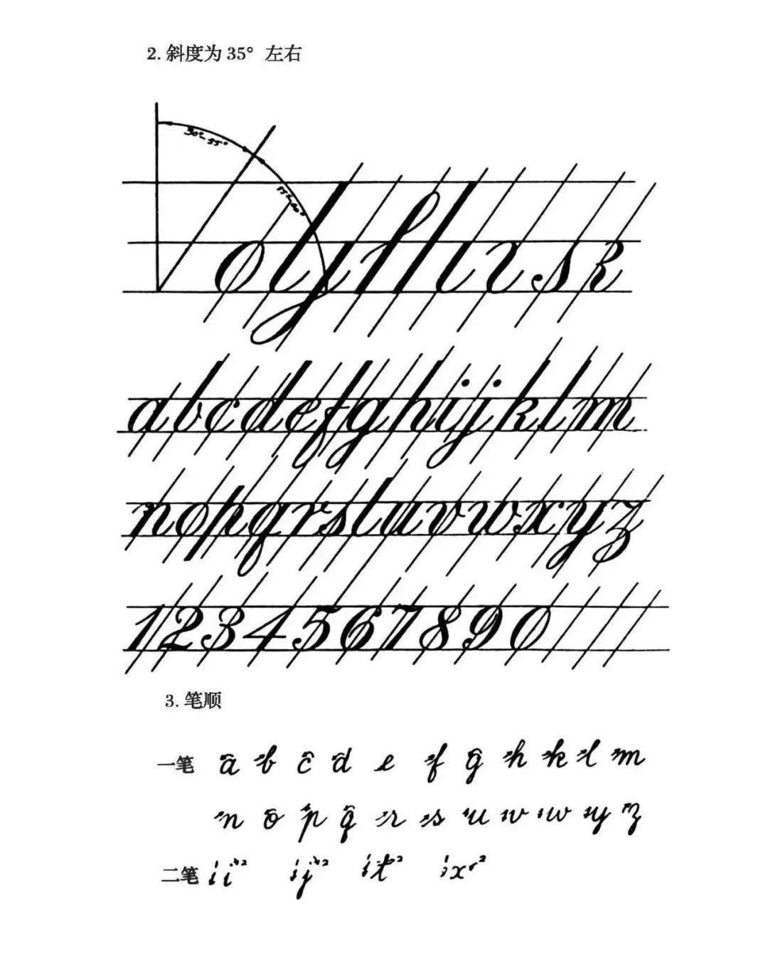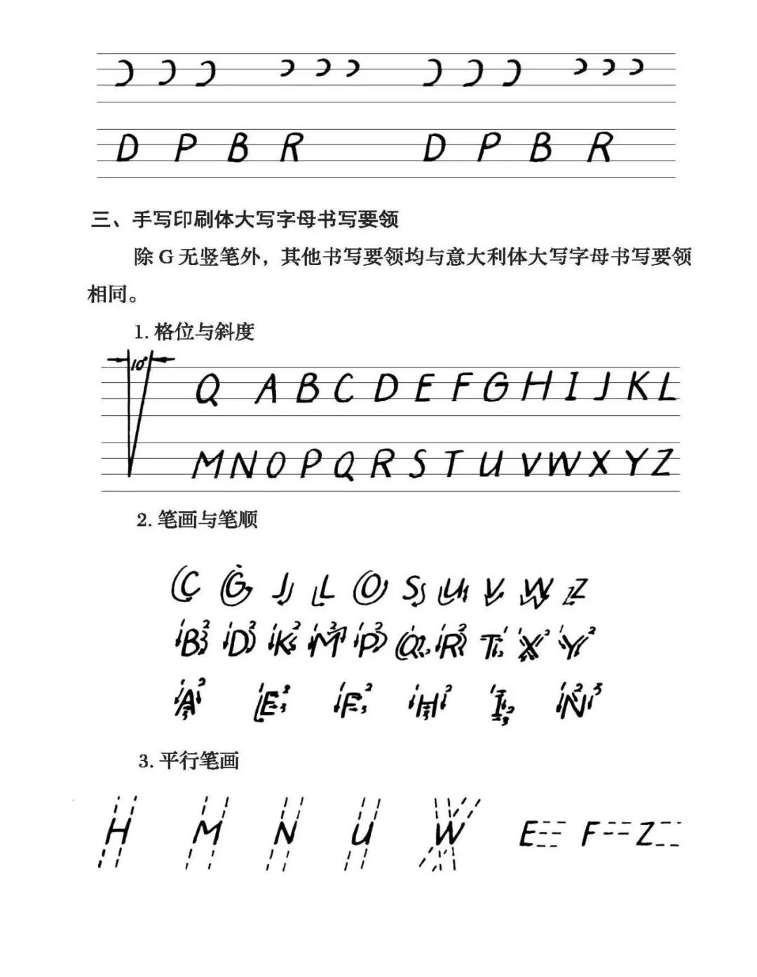 每个字母都应稍向右倾斜,约5°,斜度要一致。