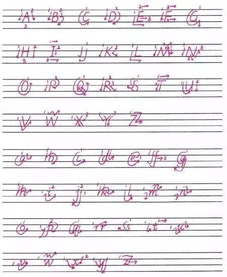 注意:有些字母是需要一笔写完,而有的字母是两笔或三笔完成的