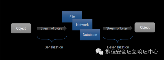 反序列化 (Serialization)将对象的状态信息转换为可以存储或传输的形式的过程。在序列化期间,对象将其当前状态写入到临时或持久性存储区。以后,可以通过从存储区中读取或反序列化对象的状态,重新创建该对象。