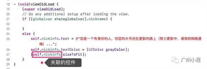 一般情况下,我们需要关联这个label,并在代码中灵活地设置text的内容。跟先定义一个vc类一样,先在代码中定义一个UILabel,并加上IBOutlet关键字,比如: