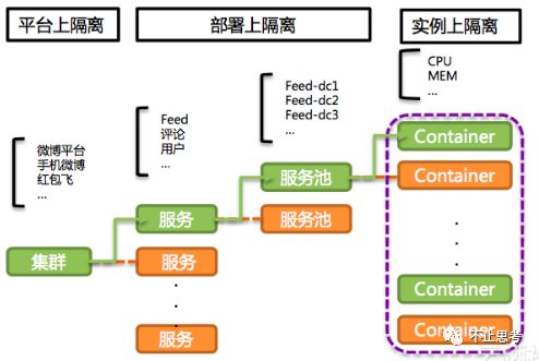 比如上图里面,微博项目可以把 Feed信息流、用户系统、评论系统 都分拆为独立业务模块,这些模块无论是对外的接口应用、还是到数据库、到底层硬件资源都是完全隔离的。其中任何一个模块的故障,理论上都不会影响到其它模块。
