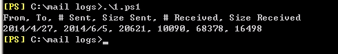 Write-Host "From, To, # Sent, Size Sent, # Received, Size Received"