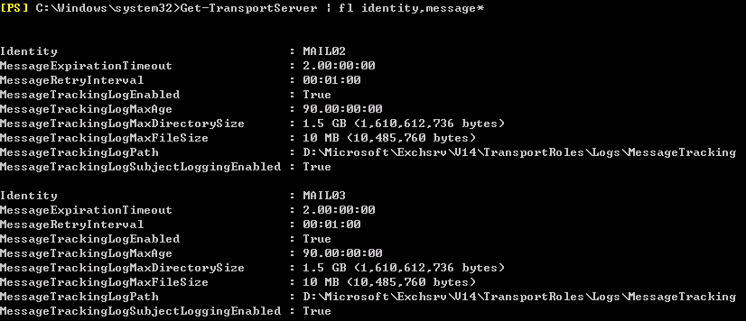 #Get-ExchangeServer | ? {$_.AdminDisplayVersion -match "8.3" -and $_.IsHubTransportServer -eq $True} | Get-MessageTrackingLog -ResultSize Unlimited -Start $FromSmall -End $ToSmall | ForEach {