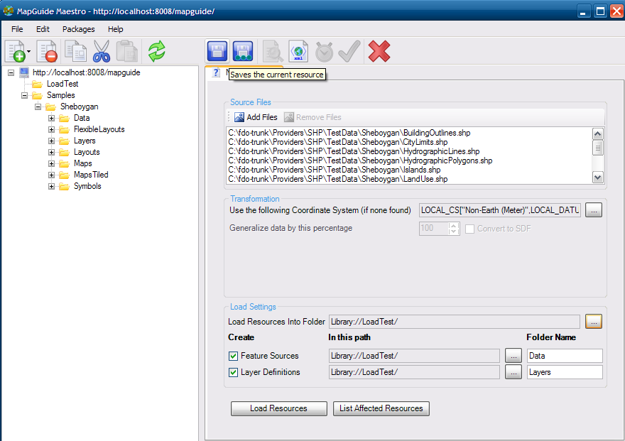 Jakie接管Maestro后又做了不少工作呢,现在加入了Load Procedures 能像MapGuide Studio方便的加载shp、SDF等资源到MapGuide 服务器了。此外还有表达式编辑器这个在Map 3D、MapGuide中才有的功能也加入到Maestro中。直接上图吧。