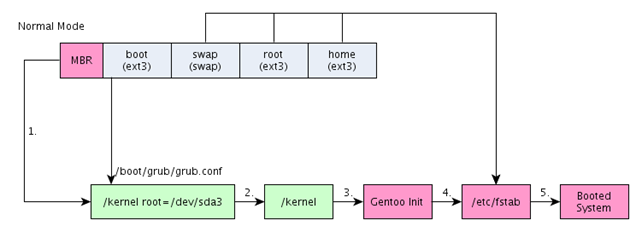 以Linux系统为例,先载入/boot目录下面的kernel。