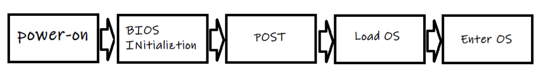BIOS存放在一个断电后不会丢失内容的ROM中,这保证了“拽着鞋带拉起自己”的这种情况不会发生。因为系统一上电或重置,处理器要执行第一条指令的地址会被定位到BIOS存储器,初始化开始运行。在X86系统中,CPU加电后跳转至BIOS的固定物理地址0xFFFF0。 打开计算机电源,计算机会首先加载BIOS,包含