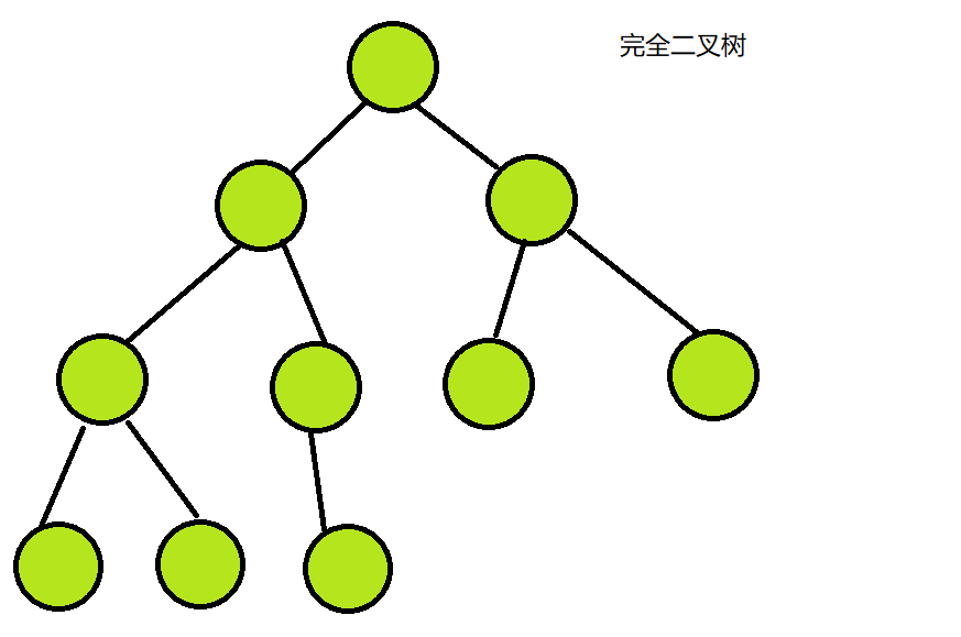 若设二叉树的深度为h,除第 h 层外,其它各层 (1~h-1) 的结点数都达到最大个数,第 h 层所有的结点都连续集中在最左边,这就是完全二叉树。