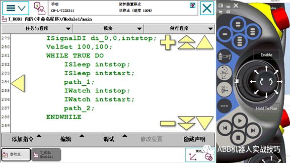 相当于机器人后台在循环扫描信号,然后由对应信号触发对应中断程序。中断程序内无运动指令,前台机器人运动不影响。