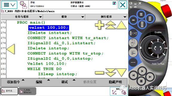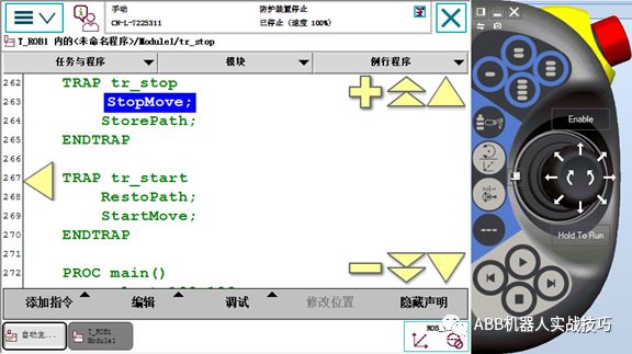 (4)建立2个中断程序,如下图,tr_stop处理光栅信号变0时的机器人停止,tr_start处理光栅信号变1时的机器人启动。