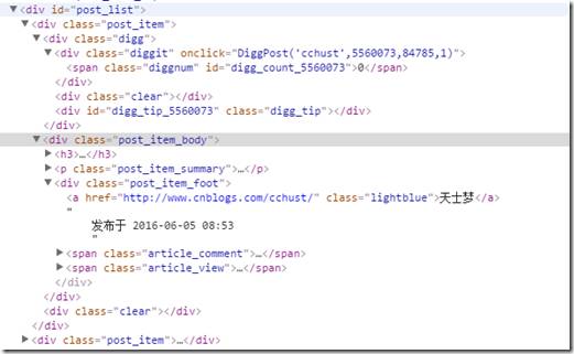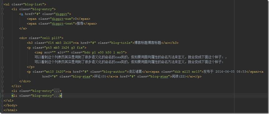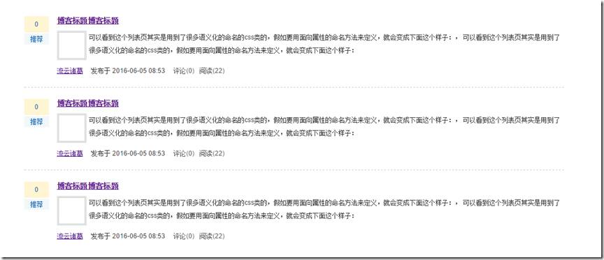 为了说明这个命名方法的作用,我做了一个demo,以博客园博客列表页来说明如何应用这种命名方法。先来看博客列表页的结构:
