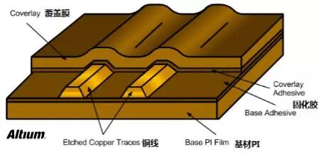 覆盖膜主要作用是对电路起保护作用,防止电路受潮,污染以及防焊。覆盖膜厚度From1/2mil to 5 mils(12.7 to 127um)。