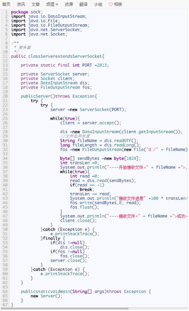 设计思路:服务器端主程序监听某一个端口,客户端发起连接请求,服务器端主程序接收请求,同时构造一个线程类,用于接管会话。当一个Socket会话产生后,这个会话就会交给线程进行处理,主程序继续进行监听。