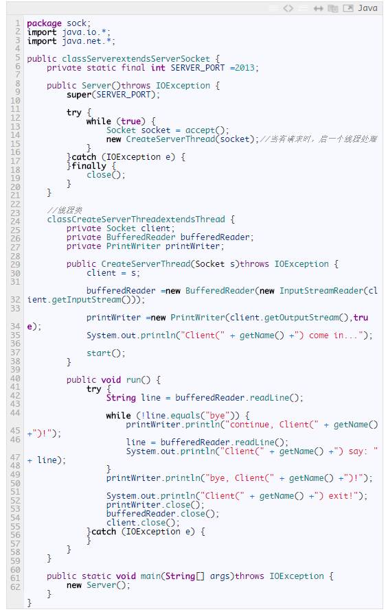 上面的服务器端程序一次只能连接一个客户端,这在实际应用中显然是不可能的。通常的网络环境是多个客户端连接到某个主机进行通讯,所以我们要对上面的程序进行改造。