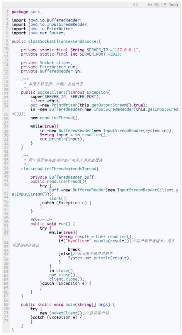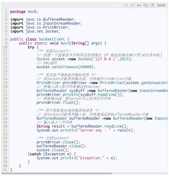 Socket通常也称作”套接字”,用于描述IP地址和端口,是一个通信链的句柄。网络上的两个程序通过一个双向的通讯连接实现数据的交换,这个双向链路的一端称为一个Socket,一个Socket由一个IP地址和一个端口号唯一确定。应用程序通常通过”套接字”向网络发出请求或者应答网络请求。Socket是TCP/IP协议的一个十分流行的编程界面,但是,Socket所支持的协议种类也不光TCP/IP一种,因此两者之间是没有必然联系的。在Java环境下,Socket编程主要是指基于TCP/IP协议的网络编程。