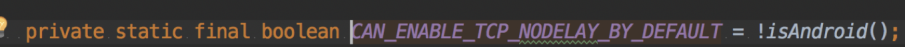 发现一个默认的变量CAN_ENABLE_TCP_NODELAY_BY_DEFAULT,它在非安卓环境下设置为关闭,即在非安卓端上部署Netty,它会自动关闭TCP的nagle算法。