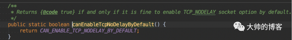 至于何时才会自动关闭该算法,需要看if判断逻辑里的判断方法——canEnableTcpNoDelayByDefault是什么东西,如下: