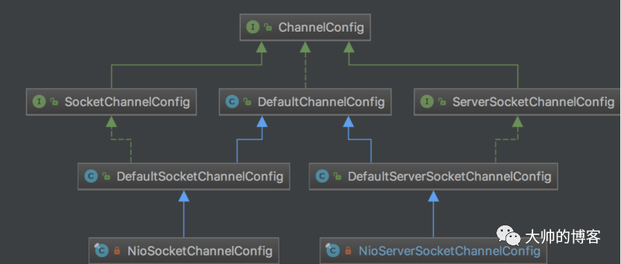 最后,还能知道每个Netty的Channel都有一个config——配置工具类,存储了每类Channel的底层网络配置,其继承关系如下: