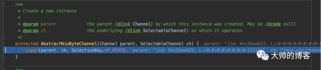 比如先调用直接父类——AbstractNioByteChannel构造器,该构造器会将SocketChannel的I/O读事件保存: