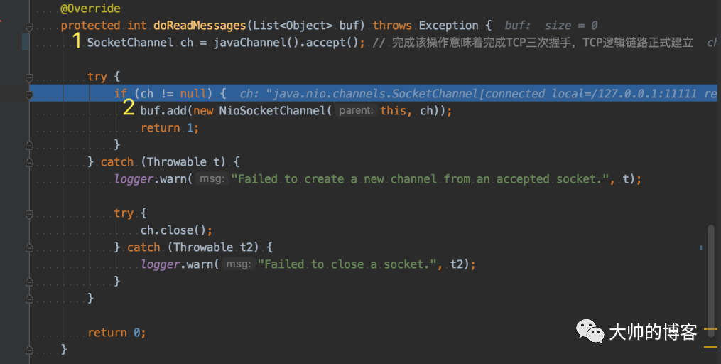 如下是Netty服务端读取新连接的核心代码,在文章:Netty是如何处理新连接接入事件的?中已经总结分析过: