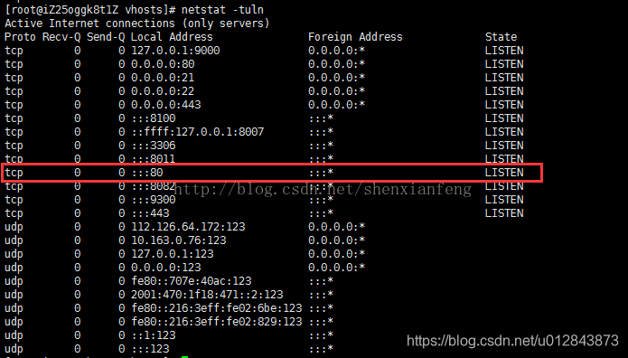 如果列表出现 :::80的监听代表ipv6的监听已经成功。