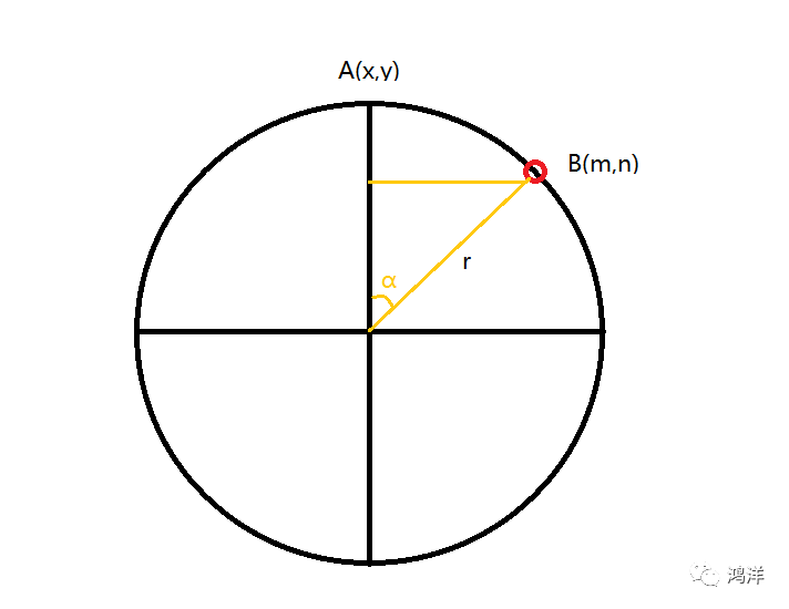 这边用一下三角函数啦,我们设A到B,转过的角度为α,设圆的半径为r,那么A到B其实横向增加的距离应该就是