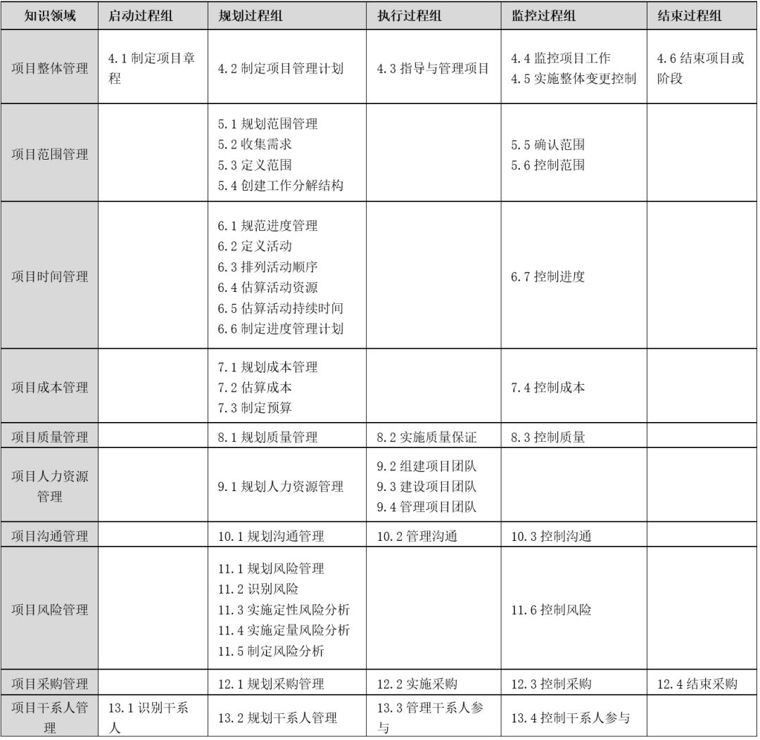 24、PMI《项目管理知识体系指南》第五版中,将项目管理过程组归纳为5个,分别是:启动、计划、执行、监督与控制、收尾。每一组都有一个或多个过程,共计47个管理过程,10个知识领域。