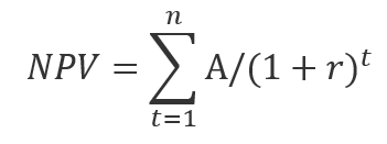 t为现金流的持续时间,A为每年的现金流量,r为折现率