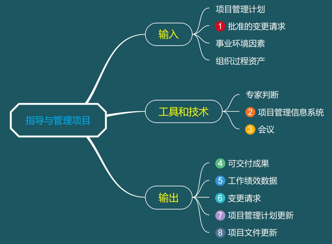 1、指导和管理项目执行过程包括两方面内容的执行,一是项目管理计划的内容,二是整体变更控制环节输出的批准的变更请求: